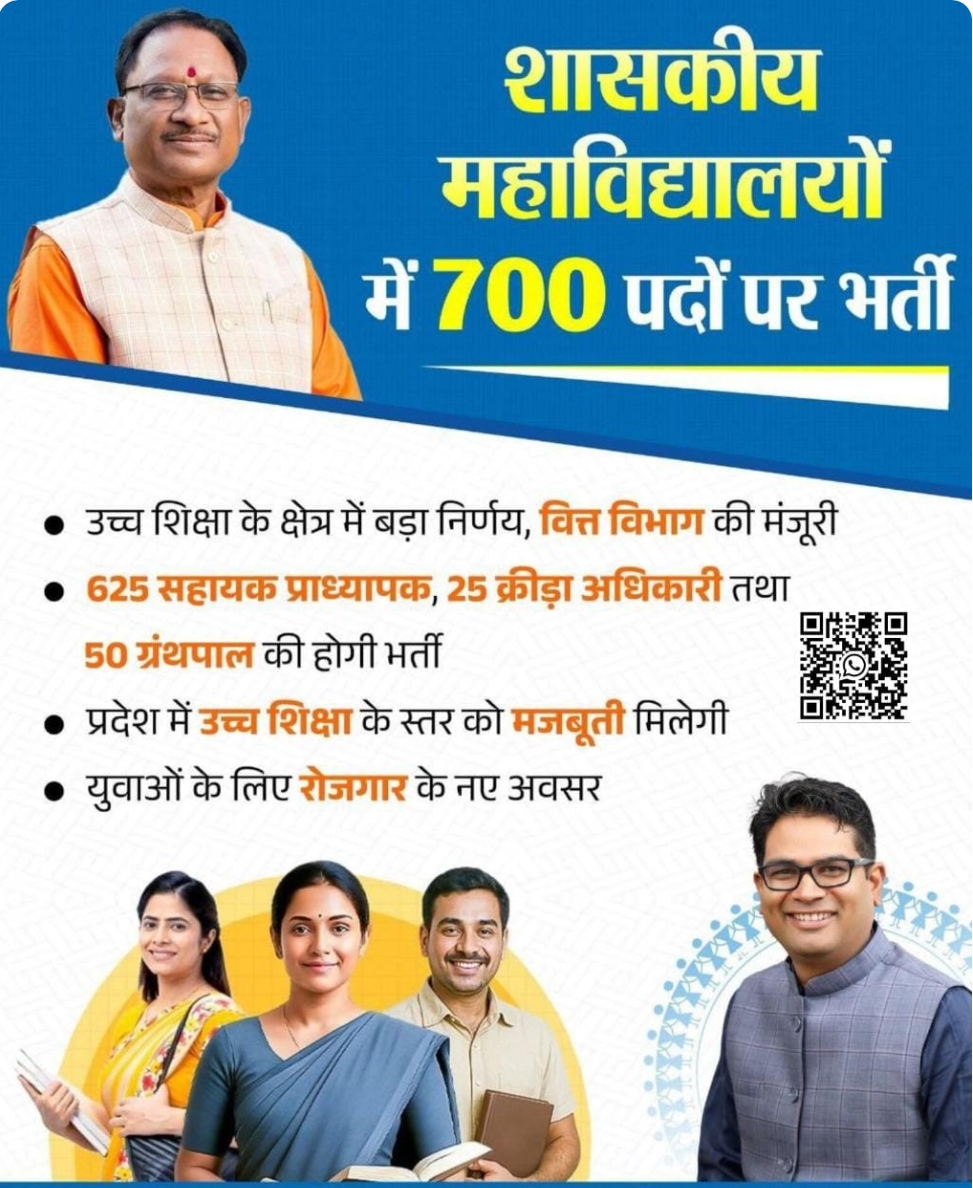 मुख्यमंत्री विष्णु देव साय के निर्देशानुसार तथा उच्च शिक्षा विभाग के प्रस्ताव पर वित्त विभाग ने 700 पदों पर भर्ती की अनुमति प्रदान की है। यह आदेश प्रदेश के युवाओं के लिए आशा और अवसर की नई किरण लेकर आया है।