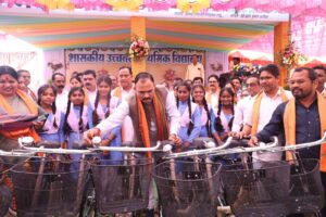 प्रभारी मंत्री श्याम बिहारी जायसवाल ने स्कूली छात्राओं को वितरित किया साईकिल,विभिन्न विकास कार्यों क़े लिये 53 लाख रुपये देने की घोषणा