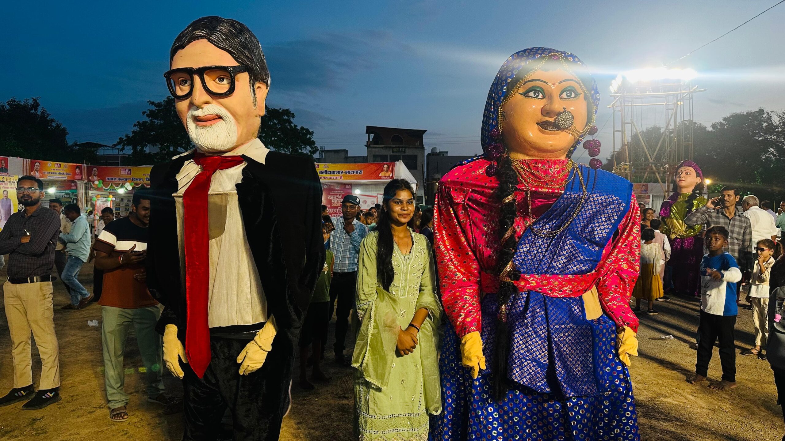 जिला स्तरीय राज्योत्सव में कठपुतलियाँ बनी आकर्षण का केंद्र प्रसिद्ध अभिनेता अमिताभ बच्चन,राजा और वीरा के रूप में आई विशाल कठपुतलियों से सेल्फी लेने की होड़